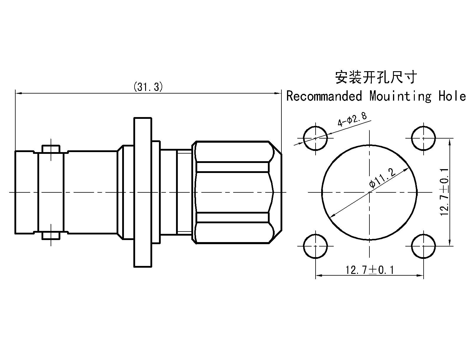 - Four-hole flange-mounted female connector