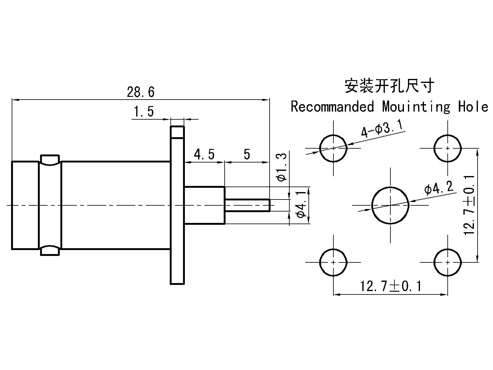 - Four-hole flange-mounted microstrip socket