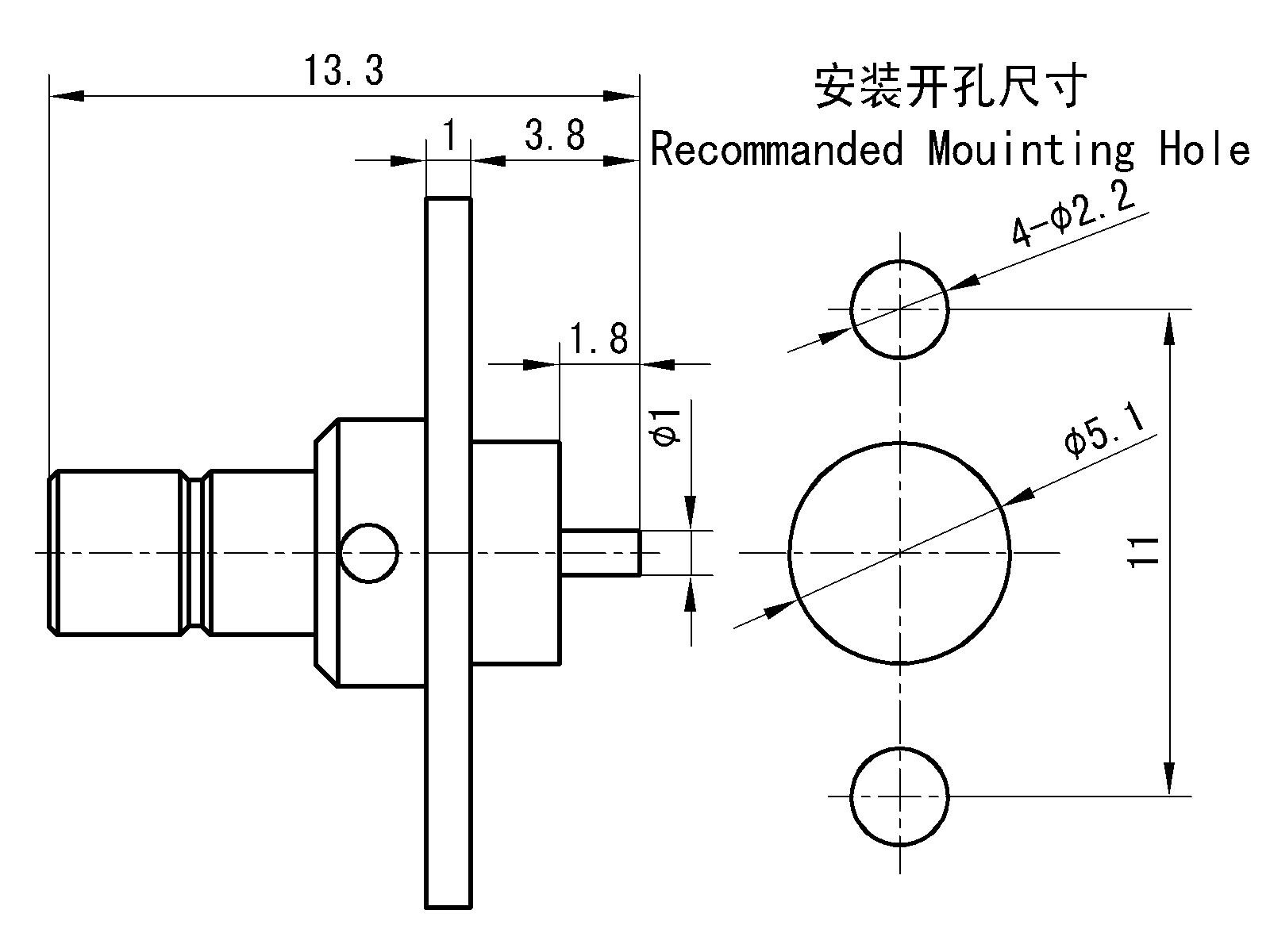| Contact resistance | Center conductor | ≤6.0mΩ | Mechanical property | |